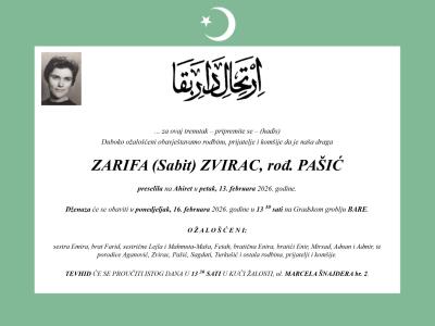 ZVIRAC ROĐ PAŠIĆ (SABIT) ZARIFA