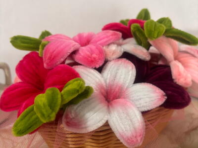 Korpica sa ljiljanima u rozim tonovima od plišanih žica.