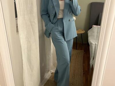 Žensko odijelo Veličina: M sako ; S pantole (odgovaraju i M)Boja: plavaStanje: jednom nošeno, bez ik...