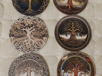 Drveni podmetači za čaše - Drvo životaPromjer 10 cm.6 kom - 12 KMPreuzimanje po dogovoru (brzom pošt...