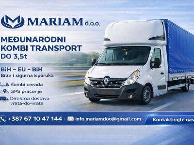 Firma MARIAM d.o.o. Zivinice nudi profesionalan i pouzdan prevoz robe kombi ceradom do 3,5t na relac...