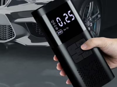 Digitalni aku kompresor sa jakom baterijom. Pogodan za napuhavanje guma za automobile, motocikle i b...