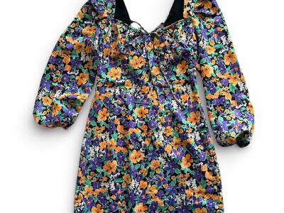 Sarena kratka haljina sa otvorenim ledjima na vezanje.