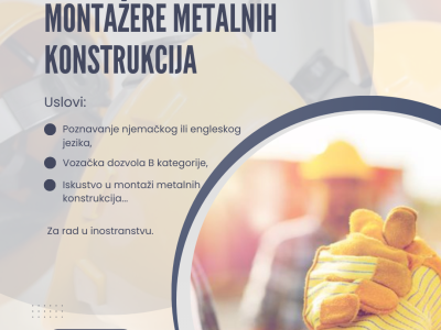Oglas za posao - montažer metalnih konstrukcija
