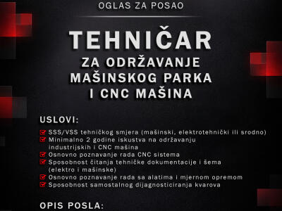 Tehničar za održavanje mašinskog parka i CNC mašina