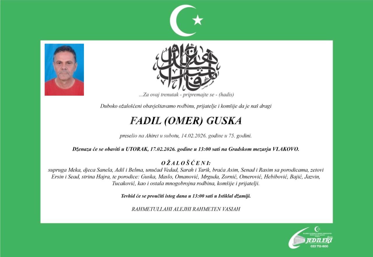 Dženaza: utorak, 17.02.2026. u 13:00h