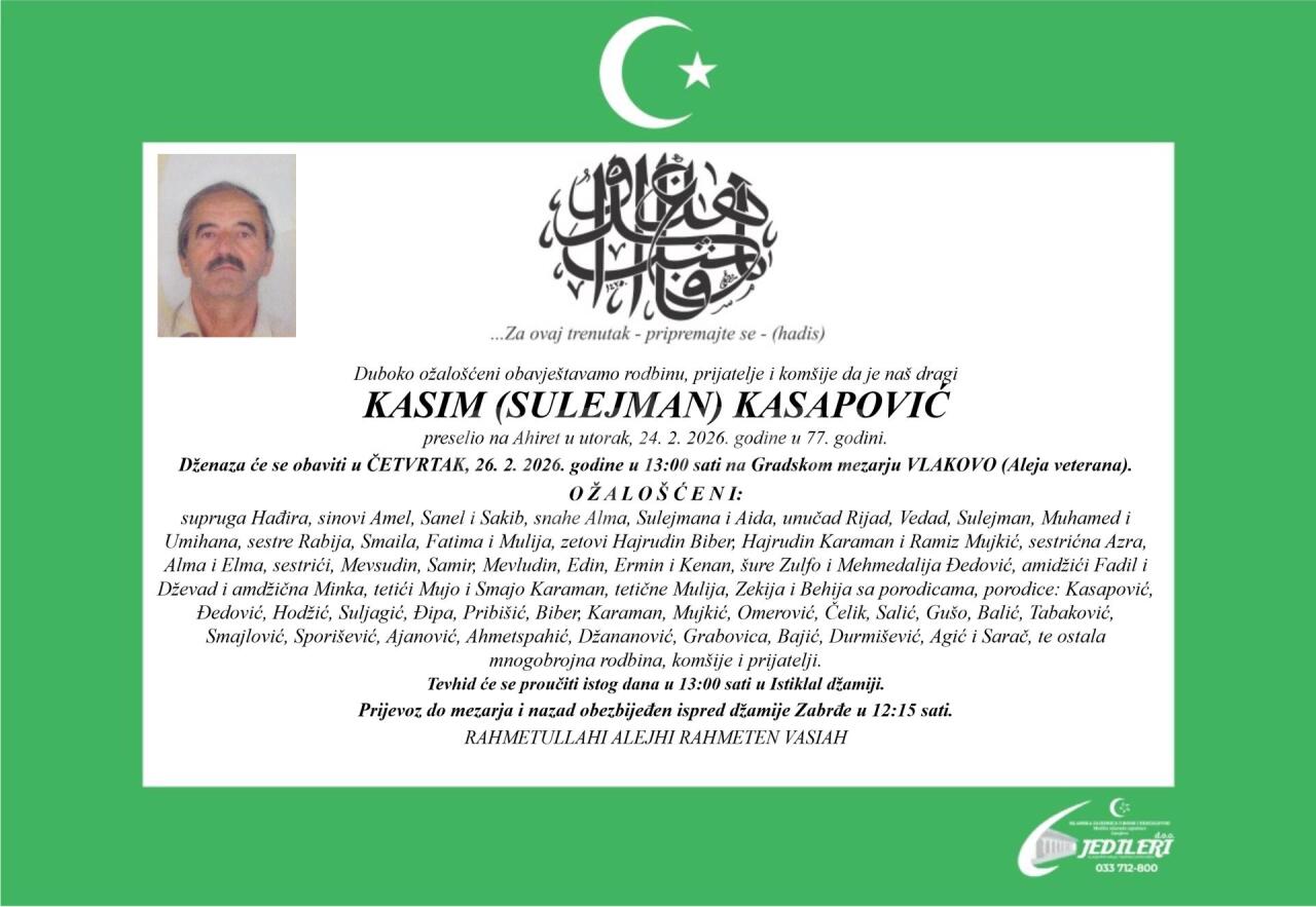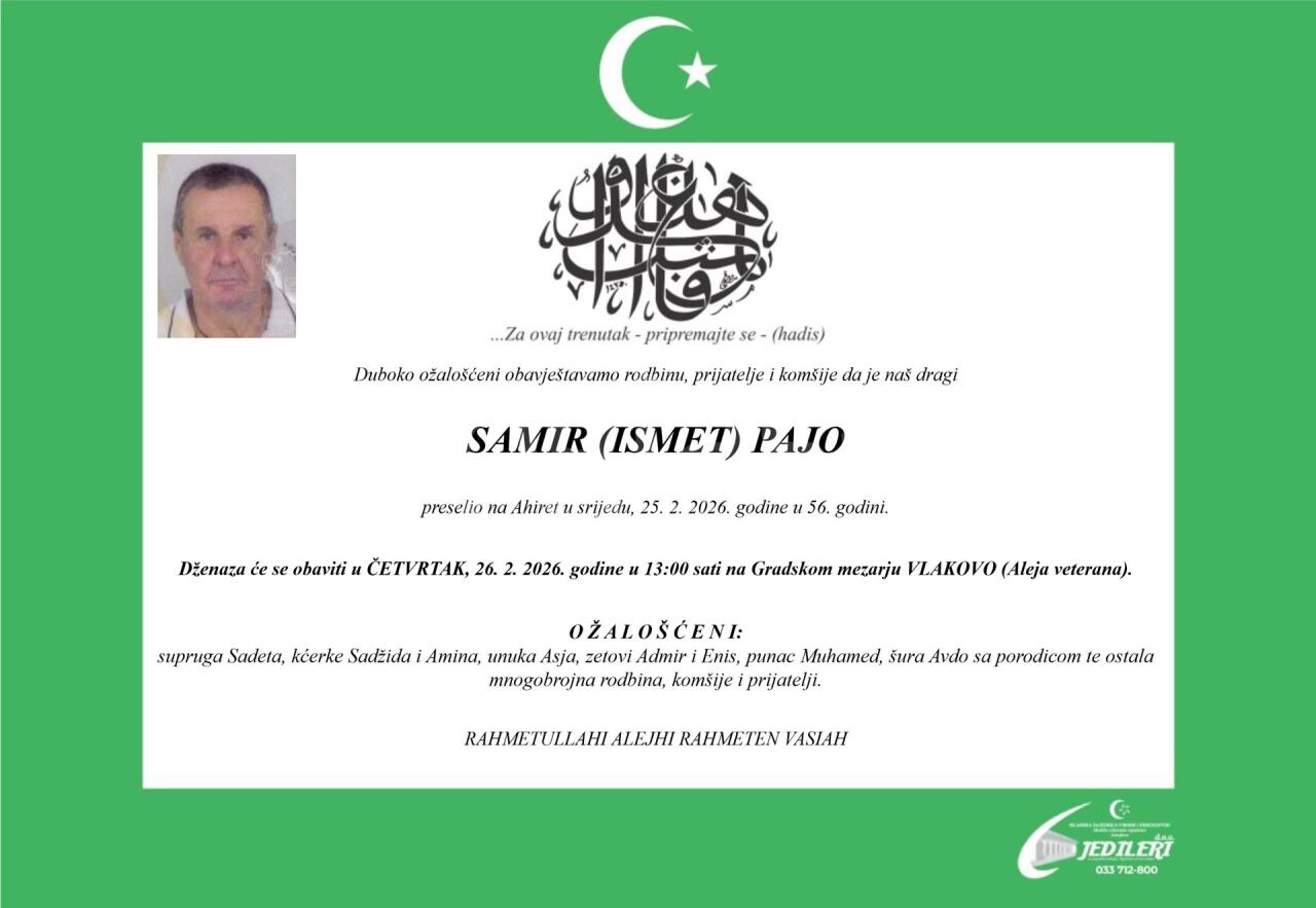 Dženaza: srijeda, 25.02.2026. u 15:20h