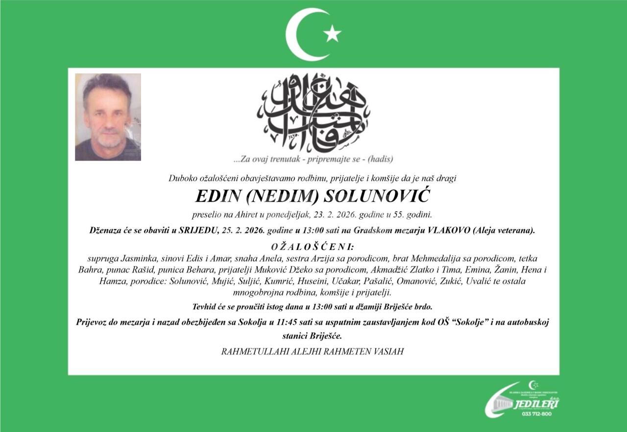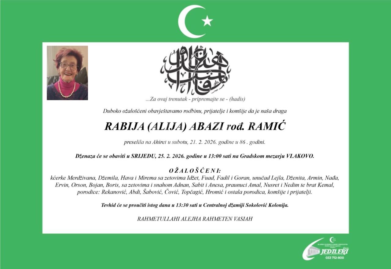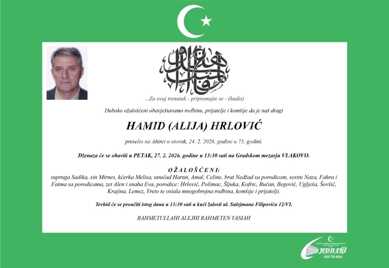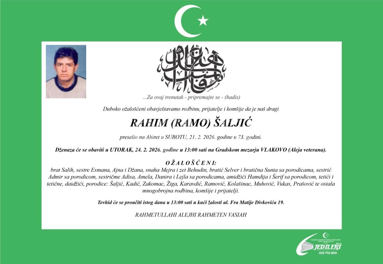 Dženaza: srijeda, 25.02.2026. u 15:15h