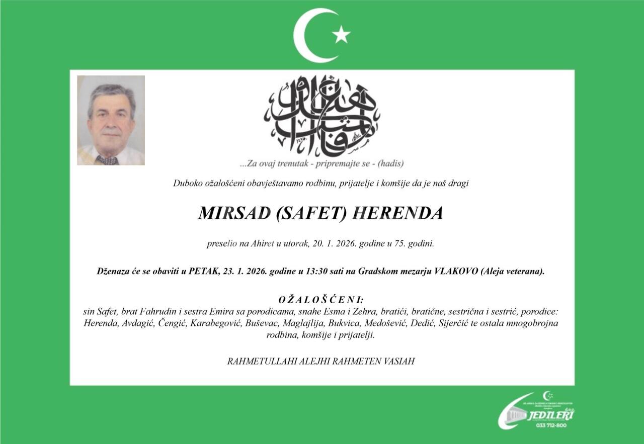 Dženaza: subota, 24.01.2026. u 14:45h