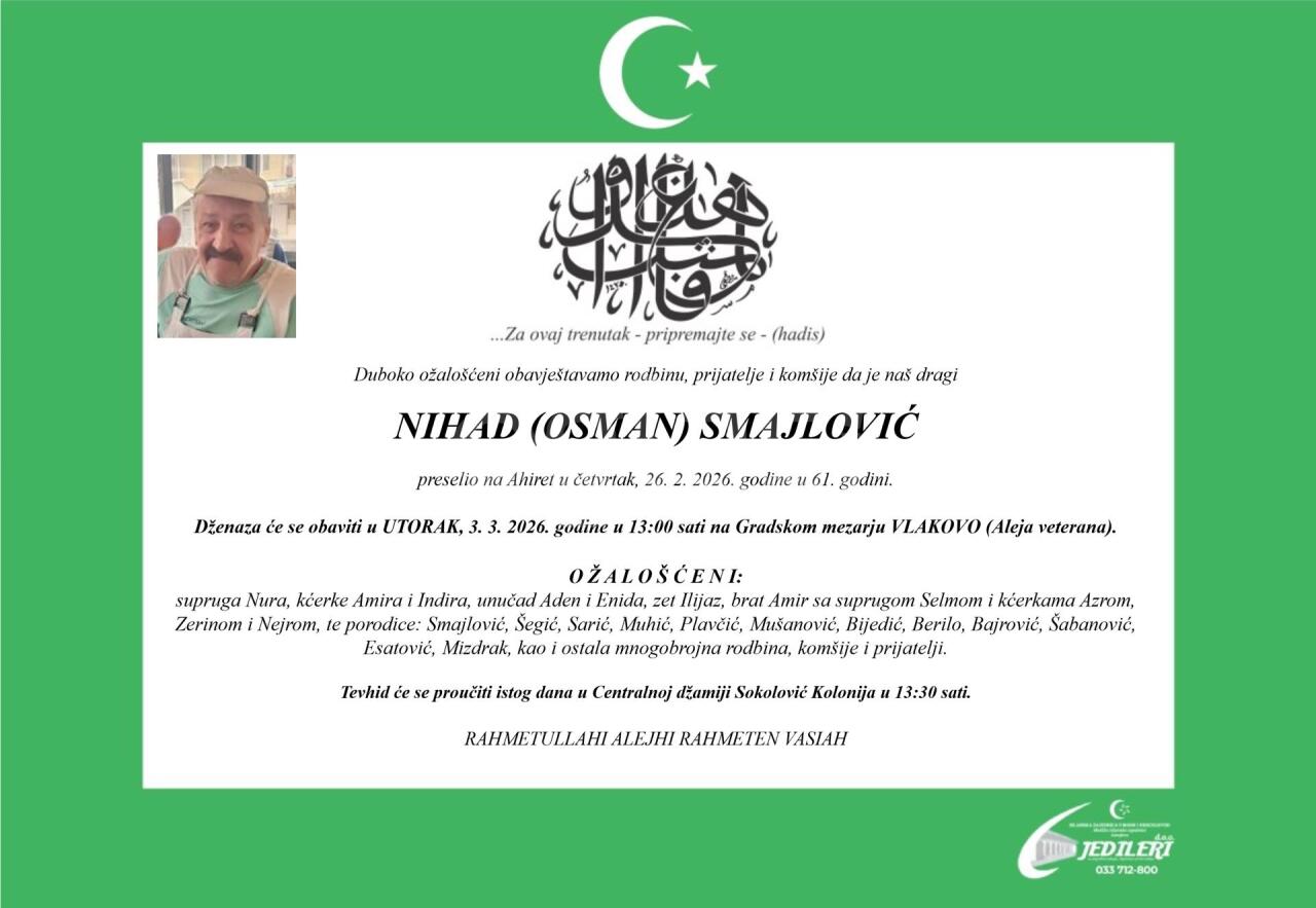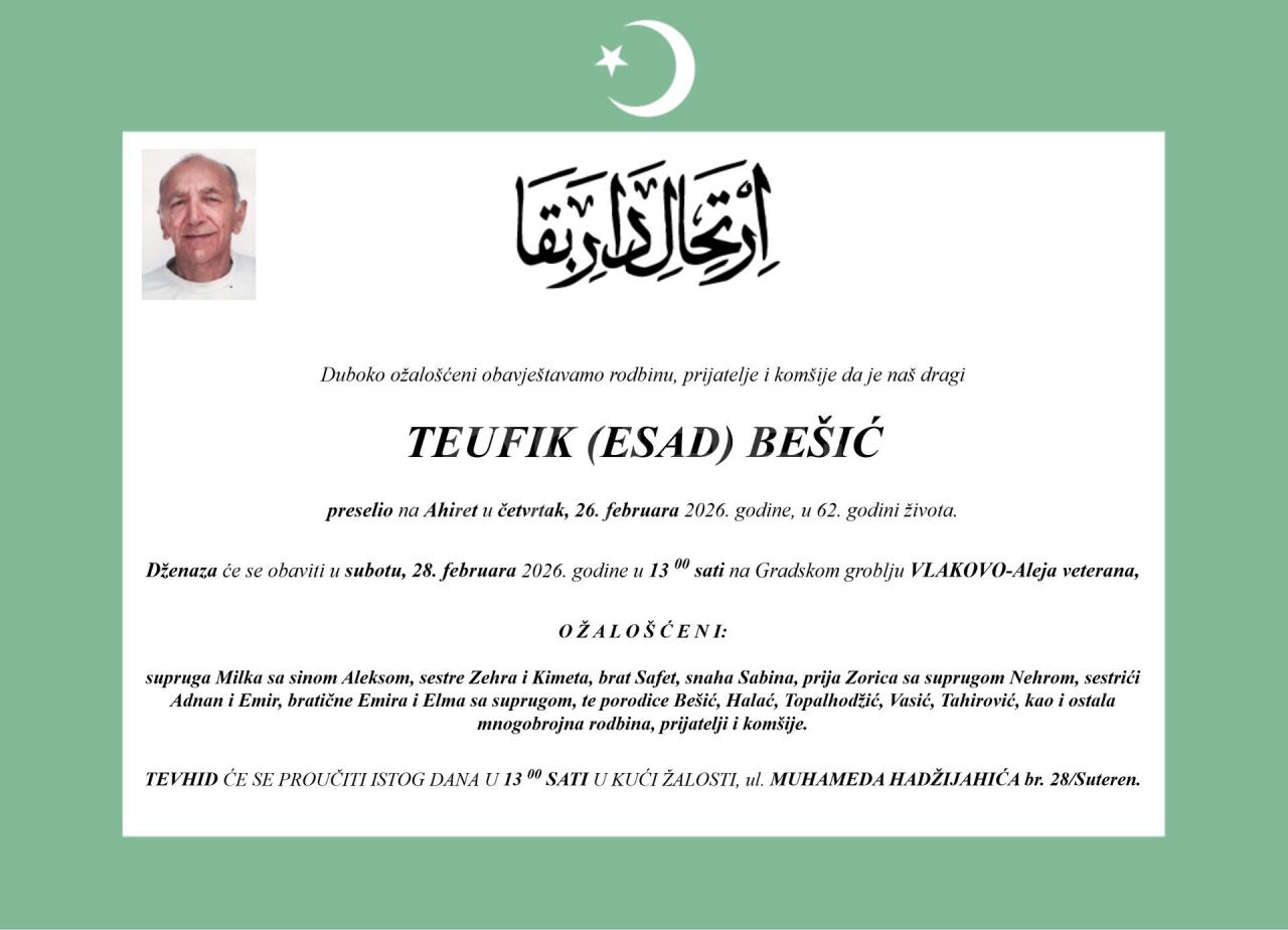 Dženaza: subota, 28.02.2026. u 13:00h