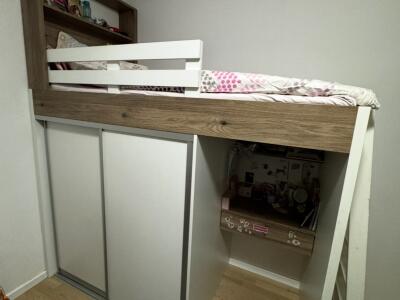 Djecija soba, krevet, ormar i radni sto.