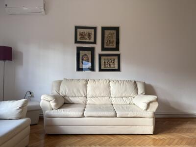Jako kvalitetan i ocuvan trosjed. Boja koja ze uklapa u svaki prostor. Dolazi sa 4 jastuka bijele i...