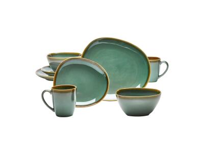Pakovanje: 24 komada: 6 šolja za kafu, 6 tanjira, 6 tanjirića, 6 posuda, Boja: Tirkizna, bež, bakren...