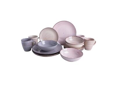 Pakovanje: 16 komada: 4 šolje za kafu, 4 tanjira, 4 tanjirića, 4 posude, Boja: Siva, roza, bež, Mate...