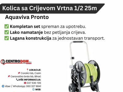 🔧 Tehničke karakteristikeCrijevo: 25 m Aquaviva Plus Ø 5/8” (15 mm)Materijali:Okvir: nehrđajući alu...