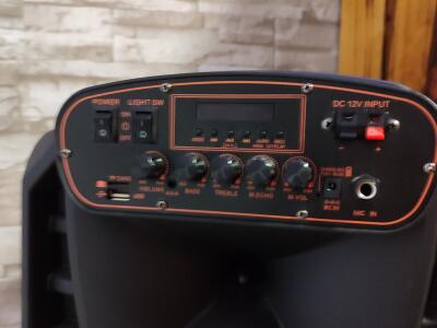 Zvučnik je znage 50w baterija 14400mahKoristen svega par puta ,bez tragova korištenja